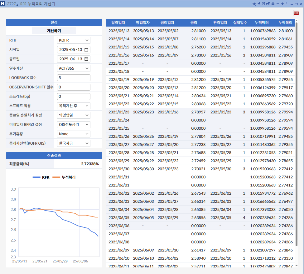 * 인포맥스 단말 [2727]에서 누적복리 계산기능 제공 중(SOFR, ESTR, SONIA, TONA도 제공 중)