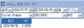 1. 2025.06.30. 외국인이 달러 조달 (3M comp.SOFR) 후 미국채 10Y 벤치마크 매수, 매수수익률은 4.229%